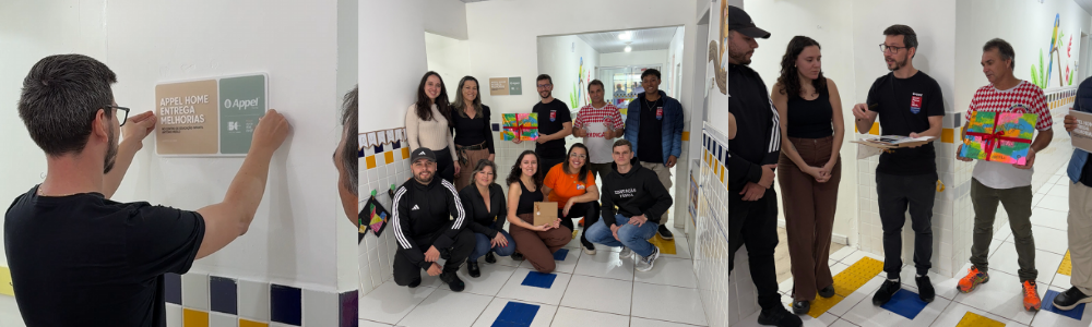O colaborador Luís, que esteve à frente do projeto, instalou uma placa especial registrando a presença da Appel nas melhorias realizadas na creche. E, de forma muito especial, recebemos das próprias crianças uma placa feita por elas, carregada de carinho e gratidão, que representou o verdadeiro significado do Bem Fazer.