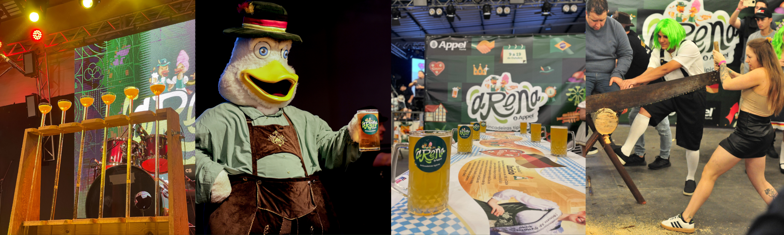 Na Arena Appel, montada especialmente para o evento, aconteceram as brincadeiras que fazem parte da tradição: Chopp em Metro, Serra-Serrador, Corrida de Tamanco, Comedor de Rollmops, Punho de Aço, Saco e a novidade e sucesso deste ano foi o Revezamento! As brincadeiras divertem os competidores, mas também as famílias e visitantes que acompanham de perto as competições.