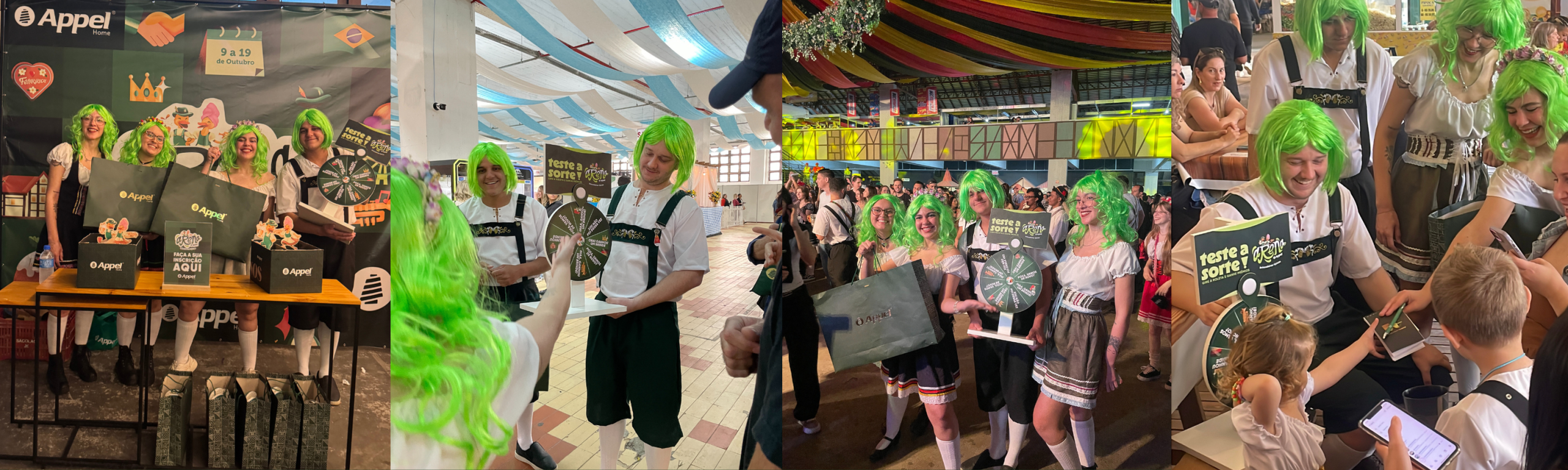 Para deixar o clima ainda mais animado, os verdinhos ficaram responsáveis pela animação antes e durante as brincadeiras da Arena Appel. Eles passearam com nossa roleta da sorte com brindes especiais, distribuindo toalhas e brindes exclusivos para quem participou da ativação.