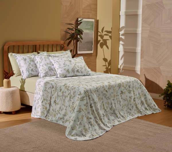 Os acabamentos, como a vira feita, viés, elástico firme e opções de fronhas agregam valor percebido e facilitam a argumentação no ponto de venda. São diferenciais claros e fáceis de explicar.