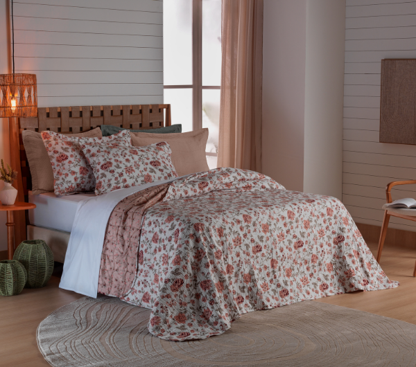 O tecido do Kit Cobre Leito Comfort possui padrões no tecido que são chamados de Efeito Dobby, um detalhe que traz um diferencial no produto.
