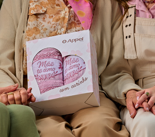 Neste ano, lançamos uma caixinha especial com 2 peças, pensada justamente para agregar valor na venda e facilitar a escolha do presente.